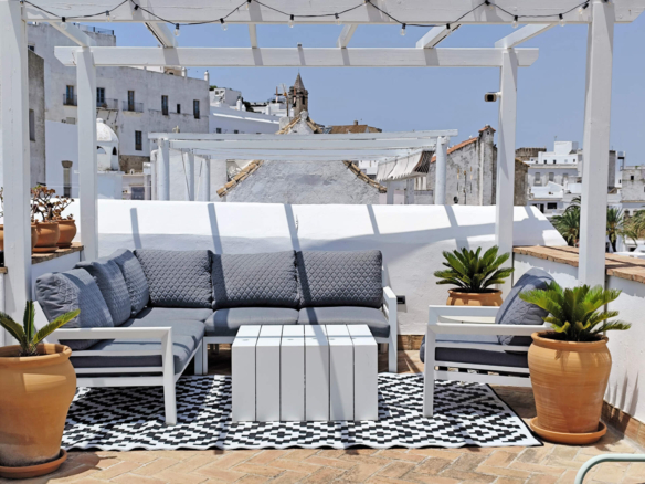 - Roof terraces: two private terraces with panoramic views of the old town and surrounding countryside. One area is equipped with outdoor dining, barbecue and relaxation space; the other includes a summer kitchen and solarium.